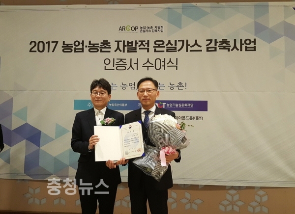 한국서부발전(사장 직무대행 정영철)은 13일 대전 션샤인호텔에서 개최된 「2017 농업농촌 자발적 온실가스 감축사업 인증서 수여식」(주최 농림축산식품부, 주관 농업기술실용화재단) 행사에서 한광춘 기후환경팀장이 농림축산식품부 장관상을 수상했다고 밝혔다.