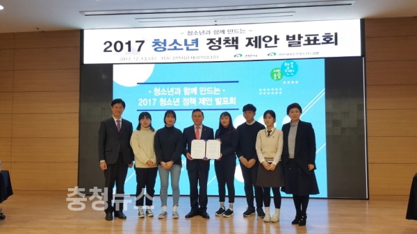 이날 청소년참여위원회는 발표한 제안서를 시청 관계자, 청소년, 청소년지도자, 학부모 등 100여명이 참석한 가운데 구본영 시장에게 전달했다.