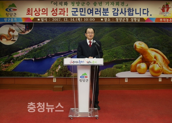 이석화 청양군수가 2017년을 마무리하면서 주요 성과를 발표하고 내년도 군정 운영 방향을 제시하는 자리를 가졌다.