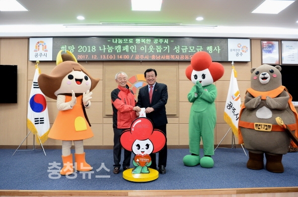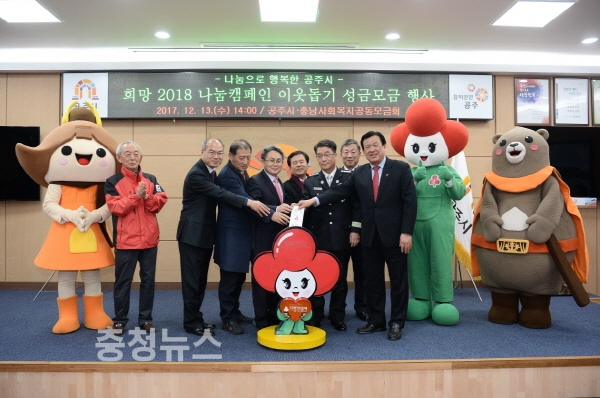 충남 공주시(시장 오시덕)가 연말연시를 맞아 ‘희망 2018 나눔 캠페인’을 펼치고 있는 가운데 지난 13일 시청 대회의실에서 성금 모금행사를 개최했다고 밝혔다.