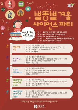 오는 1월 3일부터 별똥별과학마당(죽동문화센터 3창)과 유성구청 전산교육장에서 열리게 될 이번 사이언스파티는 관내 초등학생 90명을 대상으로,