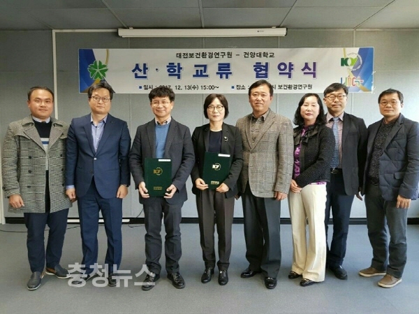 건양대학교(총장 정연주) LINC+사업단(단장 김영일)과 대전보건환경연구원(원장 이재면)은 지난 13일 오후 대전 보건환경연구원에서 학생들에게 양질의 현장실습처를 제공하고 연구분야의 확산과 공유를 목적으로 하는 산·학교류 협약을 체결했다.