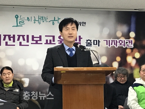 그는 14일 전교조대전지부에서 열린 진보교육감 출마 기자회견에서 이와 같이 말했다.