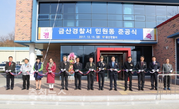 금산경찰서(서장 유희정)가 15일 김종민 국회의원, 금산군수 등 기관단체장 및 협력단체장이 참석한 가운데 민원동 준공식을 가졌다.