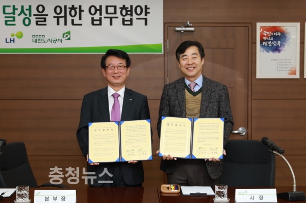 대전지역 도시개발과 재생사업의 중추적 역할을 담당하고 있는 대전도시공사와 LH공사가 업무협약을 체결하고 대전시의 건강한 도시발전을 위해 힘을 모아나가기로 했다.