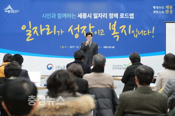 세종시(시장 이춘희)는 18일 청사 내 4층 중정에서 ‘세종시 일자리정책 로드맵 발표회 및 타운홀 미팅’을 개최했다.