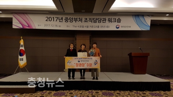 충남 아산시(시장 복기왕)가 18일 서울 더케이호텔에서 열린 ‘2017년 정부조직관리 시상식’에서 행정안전부 장관상을 수상했다.