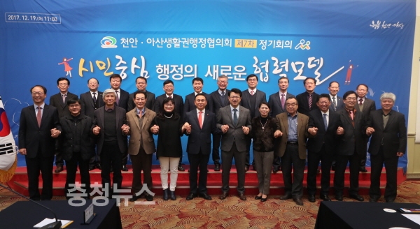 충남 천안시(시장 구본영)와 아산시(시장 복기왕)는 19일 온양관광호텔에서 양 시장과 실·국장급 행정협의회 위원, 민간자문위원이 참석한 가운데 ‘천안아산생활권 행정협의회 제7회 정기회의’를 개최했다.