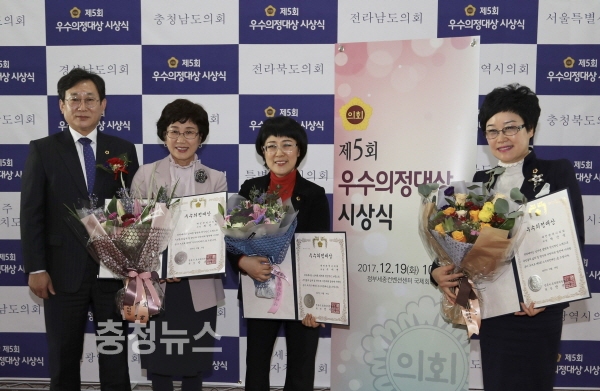 대전시의회 구미경(비례대표, 더불어민주당)․박상숙(비례대표, 더불어민주당)․최선희(비례대표, 자유한국당) 의원이 19일 '제5회 우수의정대상 시상식'에서 우수의정 대상을 수상했다.
