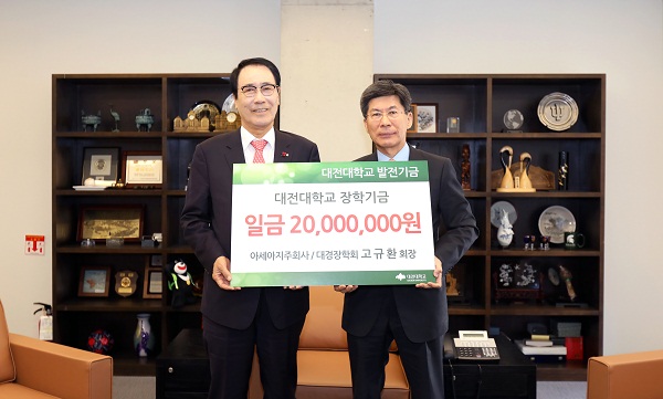 대전대는 20일 고규환 아세아지주회사 대표이사가 대학발전기금 2000만 원을 기탹했다고 밝혔다.