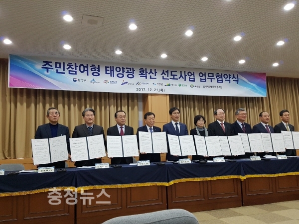 세종시(시장 이춘희)는 21일 충남 예산군 물환경센터에서 ‘주민 참여형 태양광 확산 선도사업’ 추진을 위한 양해각서(MOU)를 체결했다.