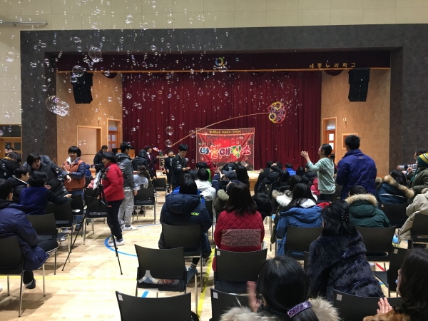 ‘2017 찾아가는 예술교실, 크리스마스 산타 버블쇼’는 세종누리학교에서 겨울의 멋진 설경과 크리스마스 분위기를 느끼기 위해 마련한 「도란도란 겨울축제」의 일환으로 진행됐으며,