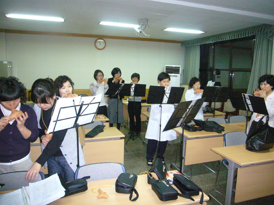 오카리나는 뾰족하게 튀어나온 윗 부분을 입에 물고 부는 새 모양의 악기로 뒤에 울림구멍이 난 것이 특징인 이탈리아 악기. 처음 6명에서 현재 인원으로 늘어났다. 오카리나의 감? 肩恝?소리에 빠지면 쉽게 중도에 포기하기가 힘든 마법의 악기라는 게 참여 회원들의 말이다.