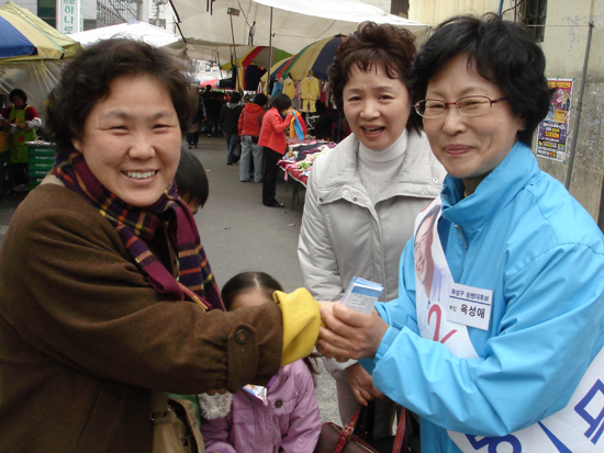 한나라당 송병대 후보는 부인인 옥성애 여사와 함께 시장에서 물건을 사는 주민들에게 자신의 명암을 건네주며 힘있는 여당후보를 뽑아달라며 자신을 국회로 보내줘야 유성발전을 할 수 있다면서 지지를 호소했다.