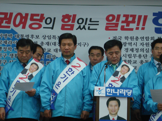 대전 서구갑 한나라당 소속 전,현직 시,구의원은 제18대 국회의원선거에 한나라당의 공천을 받아 출마한 한기온 후보에 대한 지지를 공식 선언한다.