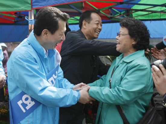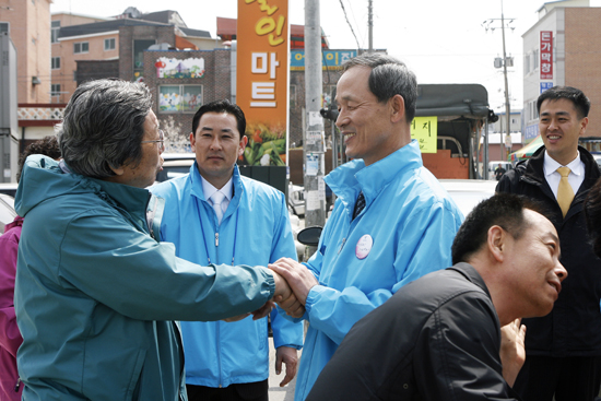 김장수 전장관은 성환장날에 맞추어 시장을 찾은 시민들과 일일이 악수하며 천안의 서민 경제를 일으킬 김호연 후보에 대한 지지를 호소했다.