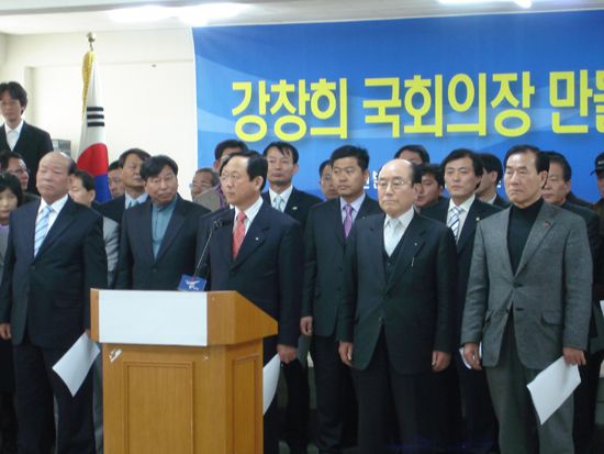 4.9 총선 7일 앞두고 한나라당 대전시당이 ''강창희 국회의장 만들기 100인 선언식'에 나섰다.