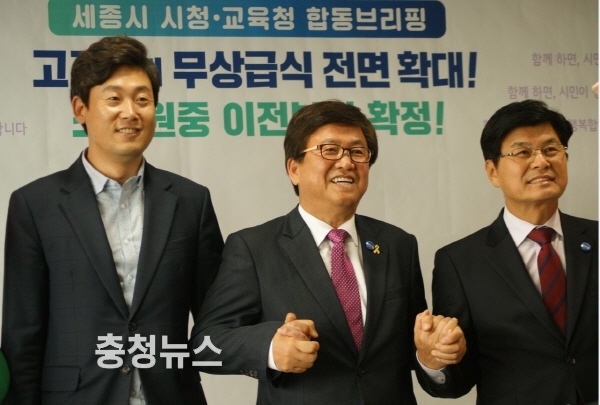 세종시와 세종시교육청은 내년부터 신도시 고등학교까지 무상급식을 확대하기로 했다. 이에 따라 내년부터 세종시에 재학 중인 초중고 학생 4만 9천178명 전원이 무상급식을 받게 됐다. 그동안 무상급식은 읍면지역 초중고와 신도시 동지역 초중학교만 이뤄졌다. 세종시와 교육청은 학교급식에 세종에서 생산된 로컬푸드를 공급하기로 했다.