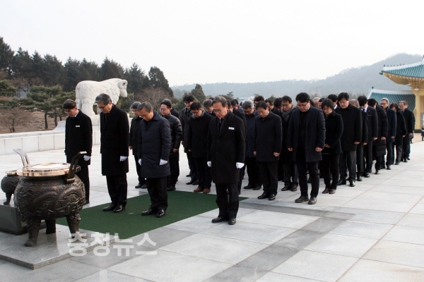 한해 업무의 시작에 앞서 현충원을 참배하는 것은 지난 2015년부터 4년째 이어지는 정례 행사로 올해는 이웃 국립대학인 충남대와 합동으로 진행됐다.