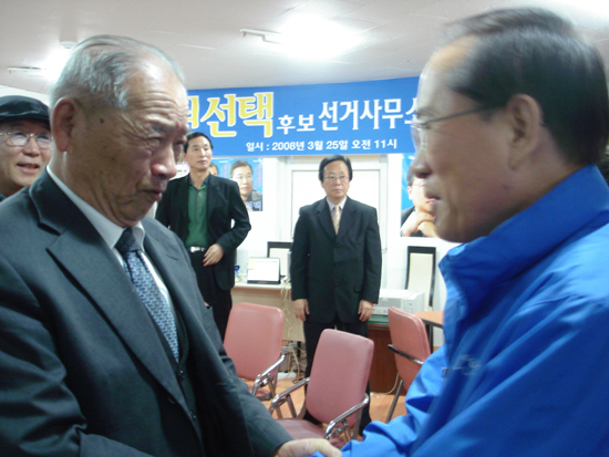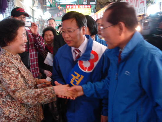 이날 권 의원의 부친 권승원(85세) 옹과 잠시 인사를 나누는 자리에서 걱정하시지 말라 며 잘 될 것 이라고 격려하고 권 후보와 함께 승용차 편으로 다음 거리 유세장인 태평동 시장으로 발길을 옮겼다.