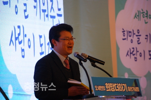 아산시장 출마를 선언한 오세현 전 아산시 부시장이 10일 자신의 저서 '희망 더하기' 출판기념회에서 "아산시민들과 함께 아산에 희망을 만들고, 아산에 희망을 나누고, 아산에 희망을 키우는 아산의 아들로 살겠다"고 다짐했다.