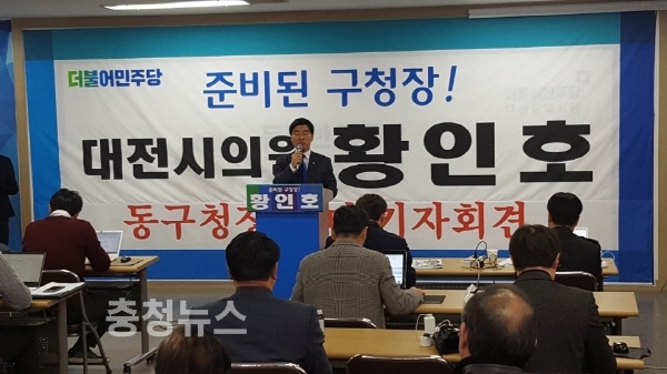황 의원은 27일 더불어민주당 대전시당에서 출마기자회견을 갖고 “동구에서 통합 5선 의원 등 동구를 위해 지난 20년간 일했다”며 준비되지 않았다면 이 자리에 서지 않았다”고 자신이 적임자임을 피력했다.