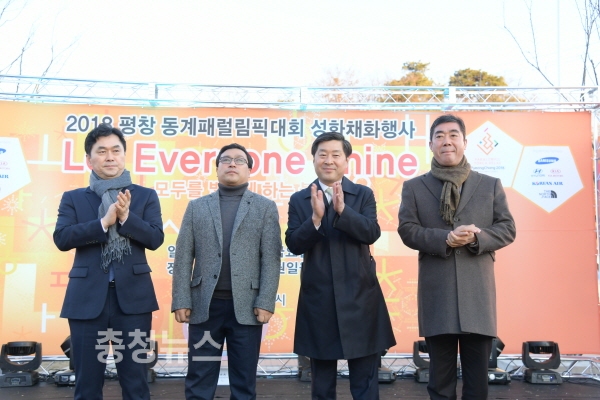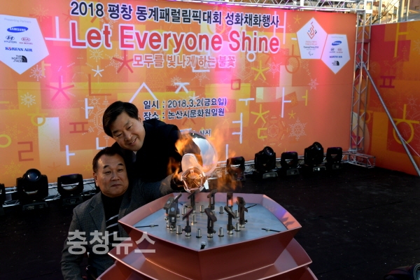 2일 논산문화원에서 ′모두를 빛나게 하는 불꽃‵ 이란 슬로건 아래 열린 이날 행사는 황명선 논산시장과 손병복 지체장애인협회장이 성화대에 점화한 후, 김종민 국회의원, 김형도 시의회 의장, 이재용 논산시장애인협회장과 시민 등이 참여한 가운데 패럴림픽 성공을 기원했다.