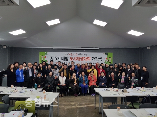 충남 아산시와 배방도시재생지원센터가 지난 10일 배방생활문화센터 문화사랑방에서 지역주민·단체 등 50여명이 참여한 가운데‘제3기 배방도시재생대학 개강식’을 진행했다.