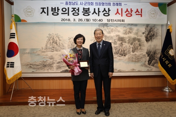 김 의원은 26일 당진군의회에서 열린 충남 시군의회의장협의회 정례회에서 의욕적이고 활발한 의정활동으로 지역사회 및 지방의정 발전에 기여한 공로로 수상의 영예를 안았다.