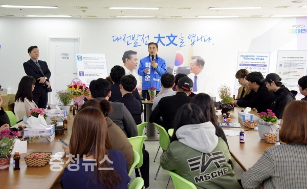 박영순 더불어민주당 대전시장 예비후보가 청년층에 특화한 공약을 발표하면서 젊은층들의 표심 잡기 행보에 나섰다.