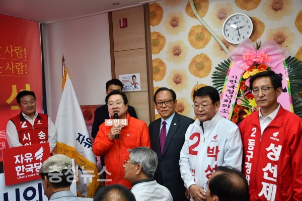 송인석 자유한국당 대전시의원 (동구1) 후보가 3일 선거사무소 개소식을 갖고 승리 의지를 다졌다.