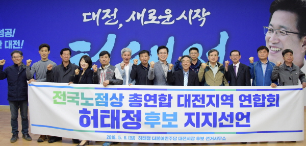 전국노점상 총연합 대전지역 연합이 6일 더불어민주당 허태정 대전시장 후보를 찾아 지지를 선언했다.