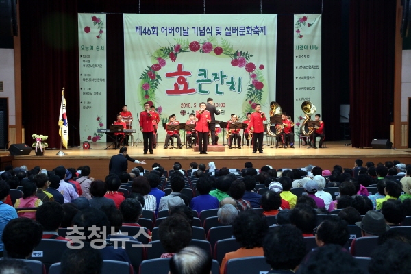 오전 10시부터 시작된 식전 행사에서는 서천군노인복지관 어르신들의 화려한 태극권시범과 육군32사단 군악대의 공연이 펼쳐졌으며 90세 이상 어르신들 중 최고령인 6분의 어르신들께 카네이션을 달아드리는 시간을 가졌다.