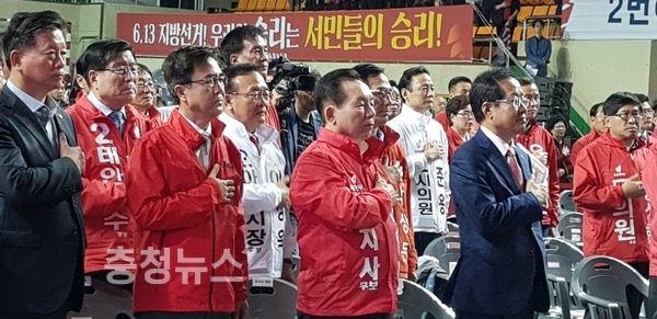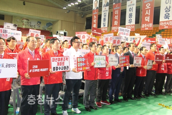 행사에는 홍준표 대표, 김태흠 최고위원, 홍문표 사무총장 성일종 도당위원장, 정진석 국회의원, 이명수 국회의원, 김동완 전국회의원,이창수 천안병위원장, 신진영 천안을 당협위원장,길영환 천안갑 후보,박상돈 천안시장 후보, 이상욱 아산시장 후보, 오시덕 공주시장 후보, 이용우 부여군수 후보, 이석화 청양군수 후보, 김동일 보령시장 후보, 노박래 서천군수 후보, 백성현 논산시장 후보, 이응우 계룡시장 후보, 이상헌 금산군수 후보, 이완섭 서산시장 후보, 한상기 태안군수 후보, 김석환 홍성군수 후보, 황선봉 예산군수 후보, 오성환 당진시장 후보를 비롯한 광역, 기초의원 후보 등이 참석했다.