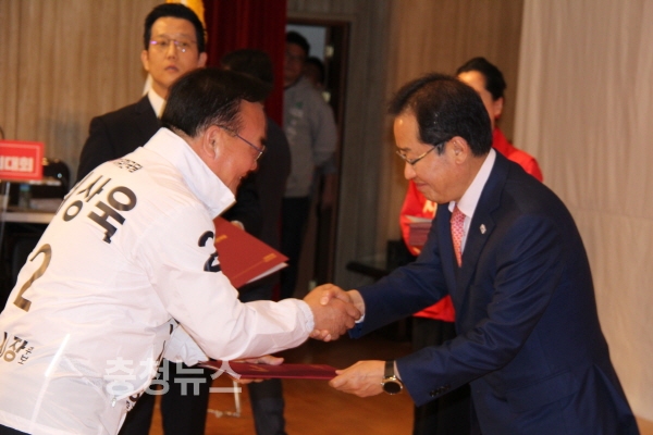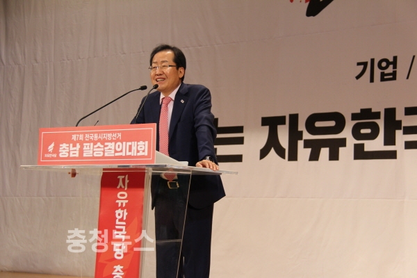 홍 대표는 10일 오전 홍성에서 6ㆍ13 지방선거에서 충남지역후보자 필승결의 대회를 가졌다.
