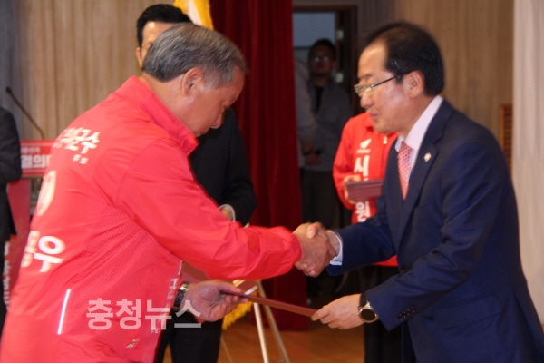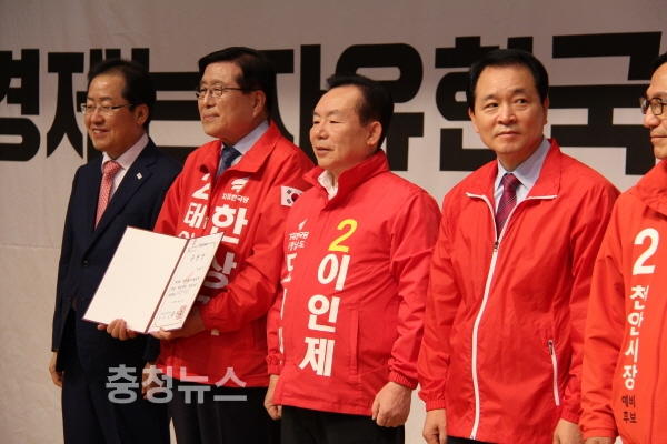 자유한국당 홍준표 대표는 “이인제 충남도지사후보는 충청권에서 김종필 총재 이후 최고의 인물”이라면서 이 후보 띄우기에 나섰다.