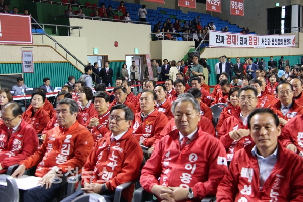 이날 홍성 홍부문화체육센터에서 열린 필승결의대회에서 홍준표 대표는 “남북문제는 2000년부터 선거판을 가르는 것이 아니며, 민생이 가장 큰 이슈로 선거에 영향을 줬다”고 분석했다.