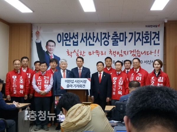 10일 이완섭 서산시장이 오전 서산시청 브리핑룸에서 출마선언 위한 기자회견 가진 뒤 예비후보자 등록을 마치고 본격 선거행보에 나선다.