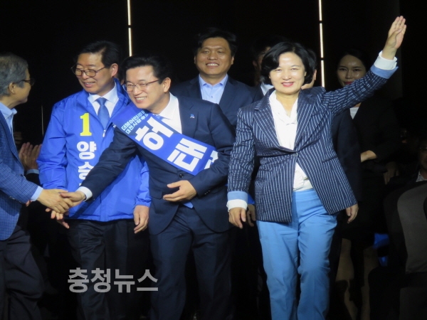 추 대표는 “유성구를 전국 도시경쟁력 1등으로 만들어낸 허 후보가 당당하게 대전시장 후보로 나선다”며 “허 후보의 꿈인 4차산업혁명특별시, 공공 어린이 재활병원, 시립의료원 등을 집권 여당 차원에서 조속히 추진하도록 하겠다”고 공언했다.