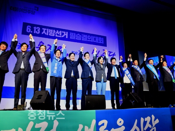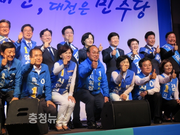 이날 민주당은 대전 호텔 ICC에서 6·13 지방선거 필승전진대회를 열고 필승 결의를 다졌다.