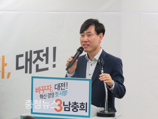 하 최고위원은 “한국당 대전시장 후보로 나서려면 홍 대표에게 막말을 그만해야 한다고 말할 수 있는 사람이어야 한다”며 “그 당에 충신은 없다. 대전을 제대로 이끌어 나가려면 한국당, 민주당 후보로는 안 된다. 하태경이 보증한다”고 자당 소속인 남충희 후보를 치켜세웠다.