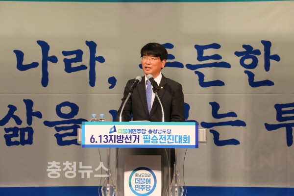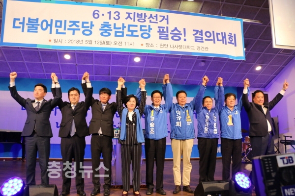 더불어민주당 충남도당이 12일 ‘6․13 지방선거 필승전진대회’를 개최했다.