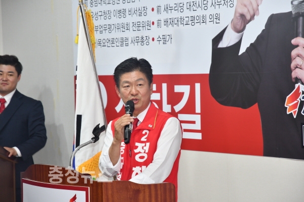 정하길 후보는 "저의 어깨에는 구청장이라는 개인적 영달을 떠나 중구의 미래가 얹혀져 있다"며 "갈수록 낙후돼 가고 있는 중구의 부흥을 일으켜야 할 사명을 받았다"고 굳건한 의지를 내비쳤다.