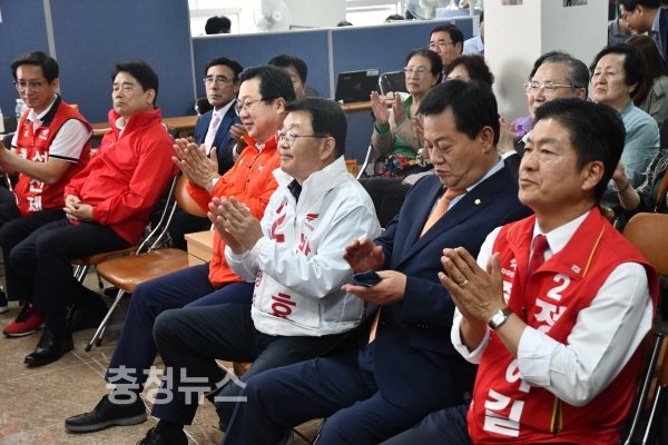 격려사에서 이장우 의원은 “낙후된 중구 발전을 위해 이은권 위원장과 정 후보가 함께 중구를 책임져야 한다”며 “대전 지역의 대표 원도심인 중구의 새로운 변화를 위해 정 후보에게 힘을 실어달라”고 지지를 호소했다.
