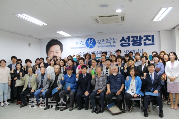 이날 참석한 지지자들은 "대전교육의 개혁을 위해 성광진 후보를 교육감으로 만들자"고 외쳤다.