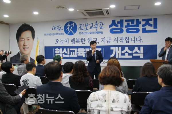 이날 성광진 후보는 “4~50년에 이르는 대전의 교육 시스템을 개혁할 것”이라고 목소리를 높였다.