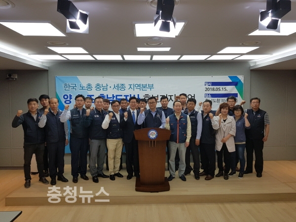 한국노총 충남지역본부(고석희 의장)가 오는 6.13 지방선거에서 충남도지사에 도전하는 양승조 더불어민주당 충남도지사 후보에 대한 전폭적인 지지를 선언했다.