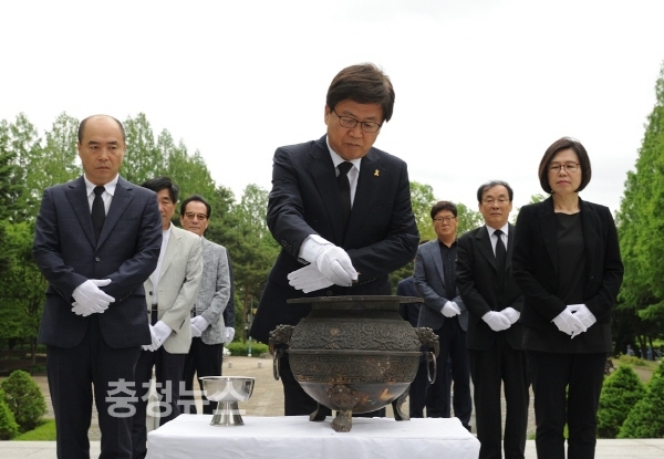 세종 충령탑 찾아 헌화와 분향 지방선거에서의 필승 의지 다져