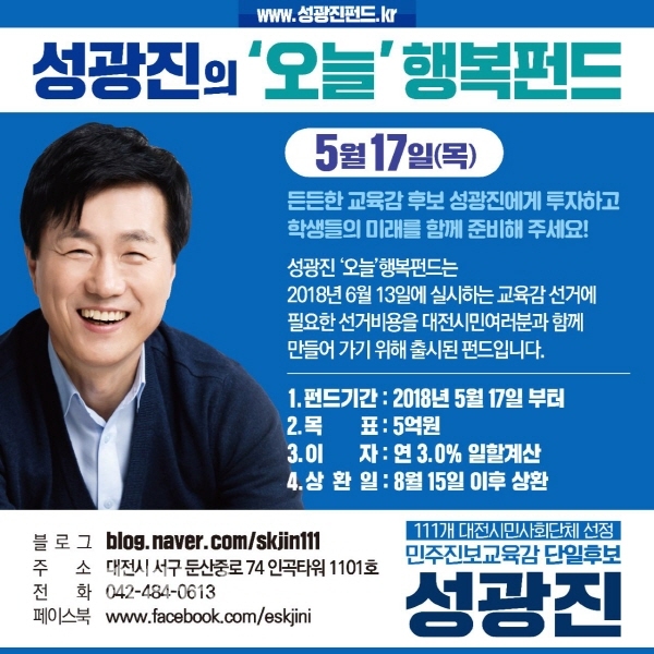 성광진 대전교육감 예비후보가 ‘오늘행복펀드’를 지난 17일 출시했다.