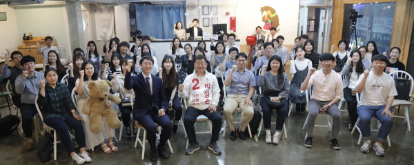 박성효 대전시장 후보는 지난 17일 은행동 힐링 문화 카페 ‘쉼’에서 ‘대전 청년 해보슈 협동조합 및 대전 청년커뮤니티 연합’ 회원 50여명과 간담회를 가졌다.
